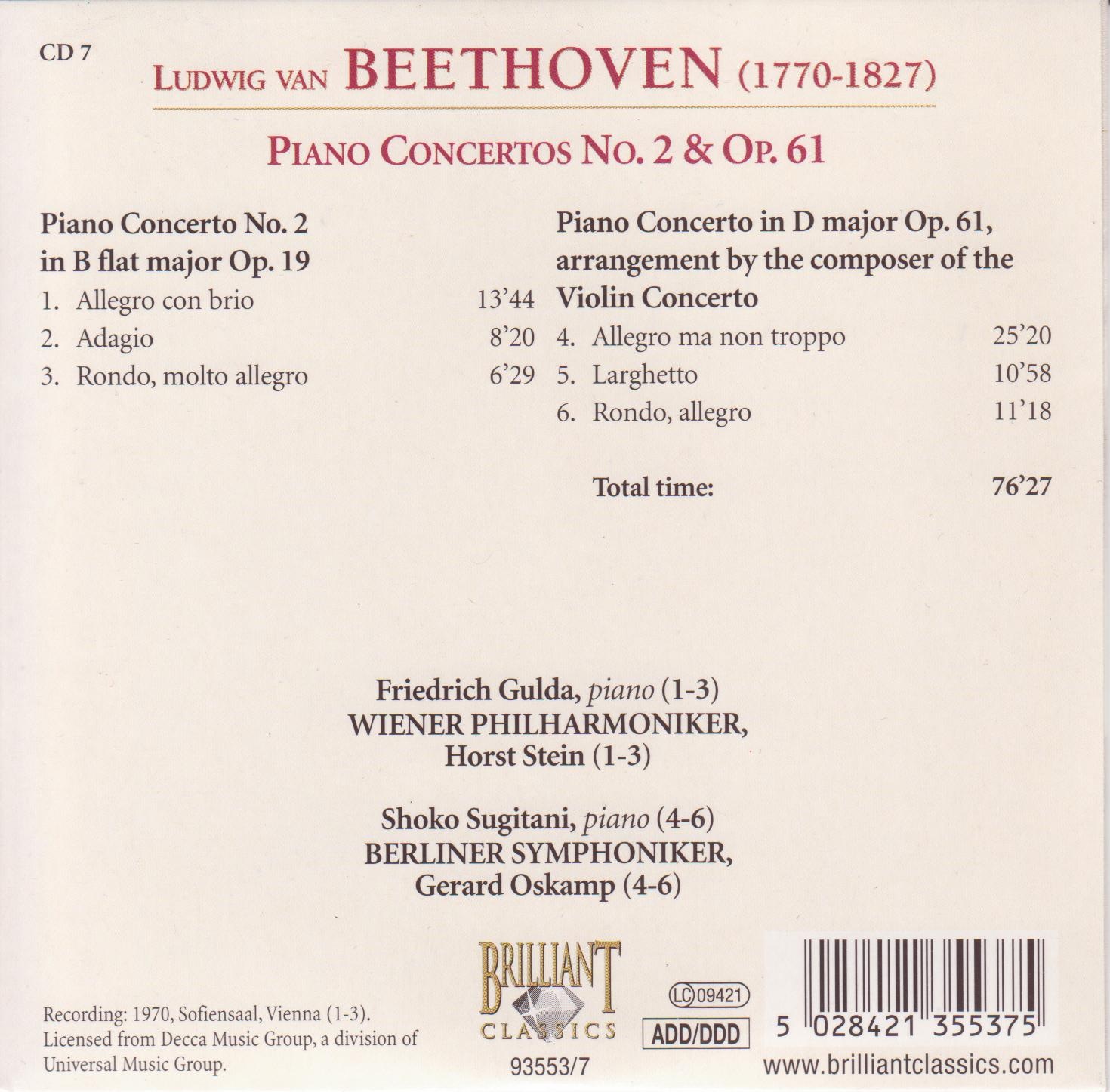 | - | 01 - Piano Concerto No.2 in Bb Op19 - 1 Allegro con brio.flac | 58973668 | | Complete Works CD 007 - Piano Concertos No.2&Op.61 | 1 | Ludwig van Beethoven | Piano Concerto No.2 in Bb Op19 - 1 Allegro con brio | 1970 | 827.12 | 570 | | flac | flac | | flac | 2024-05-26 16:57:51 |