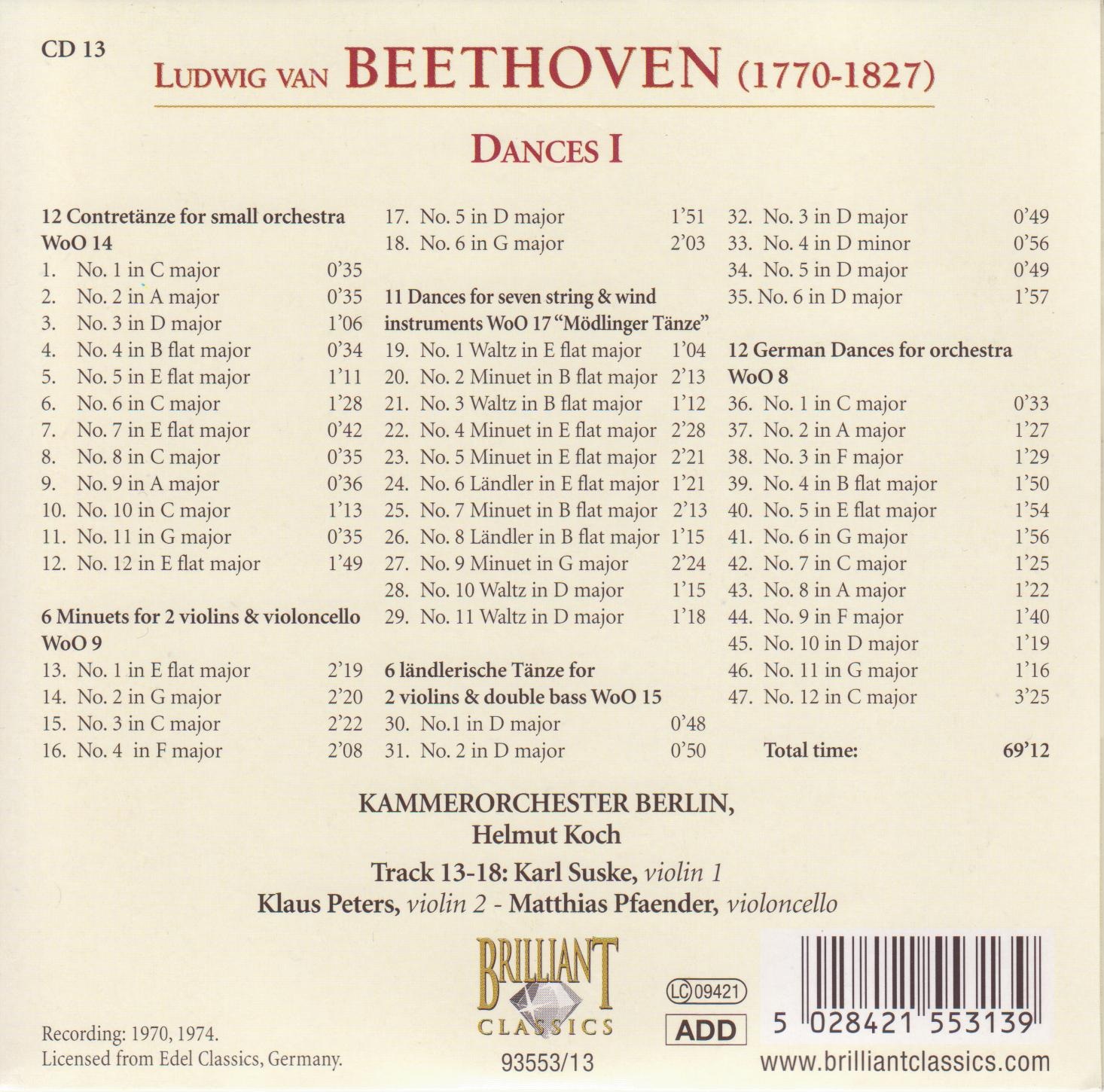 | - | 23 - 11 Dances for 7 string & wind instruments, WoO17 - No.05 Minuet in E flat major (Helmut Koch).flac | 12055499 | | Complete Works CD 013 - Dances I | 23 | Ludwig van Beethoven | 11 Dances for 7 string & wind instruments, WoO17 - No.05 Minuet in E flat major (Helmut Koch) | 1974 | 140.84 | 684 | | flac | flac | | flac | 2024-05-26 16:54:34 |