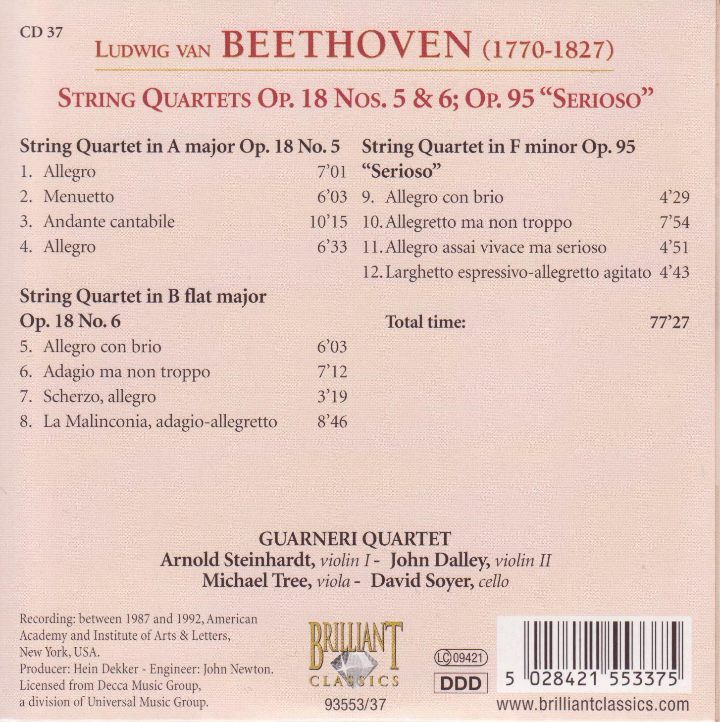 | - | Complete Works CD 037 - String Quartets Op.18 Nos.5&6; Op.95 Serioso.cue | 1994 | | | | | | | | | | | | | cue | 2024-05-26 16:43:46 |