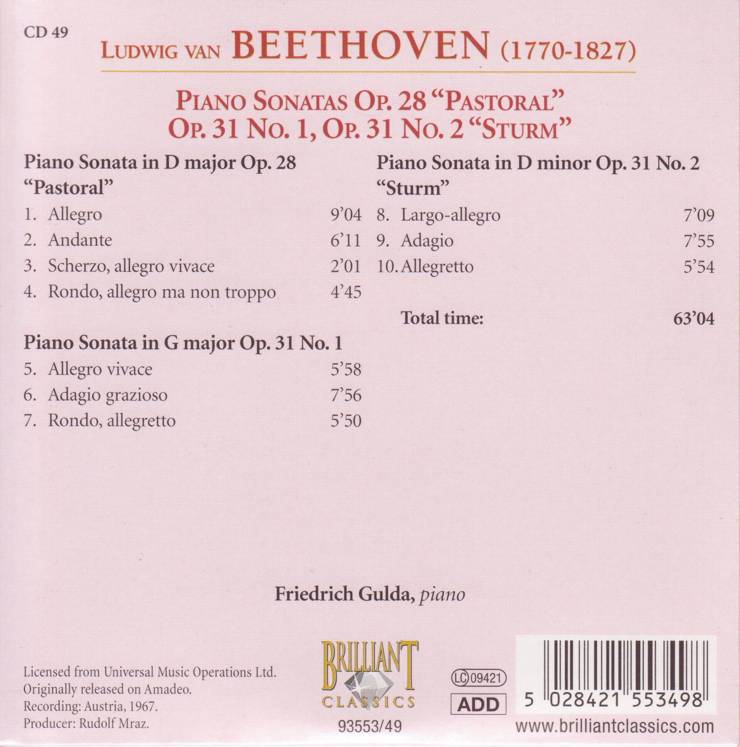 | - | Complete Works CD 049 - Piano Sonatas Op.28 Pastoral , Op.31 No.1, Op.31 No.2 Sturm.cue | 1380 | 2024-05-26 16:37:34 |
