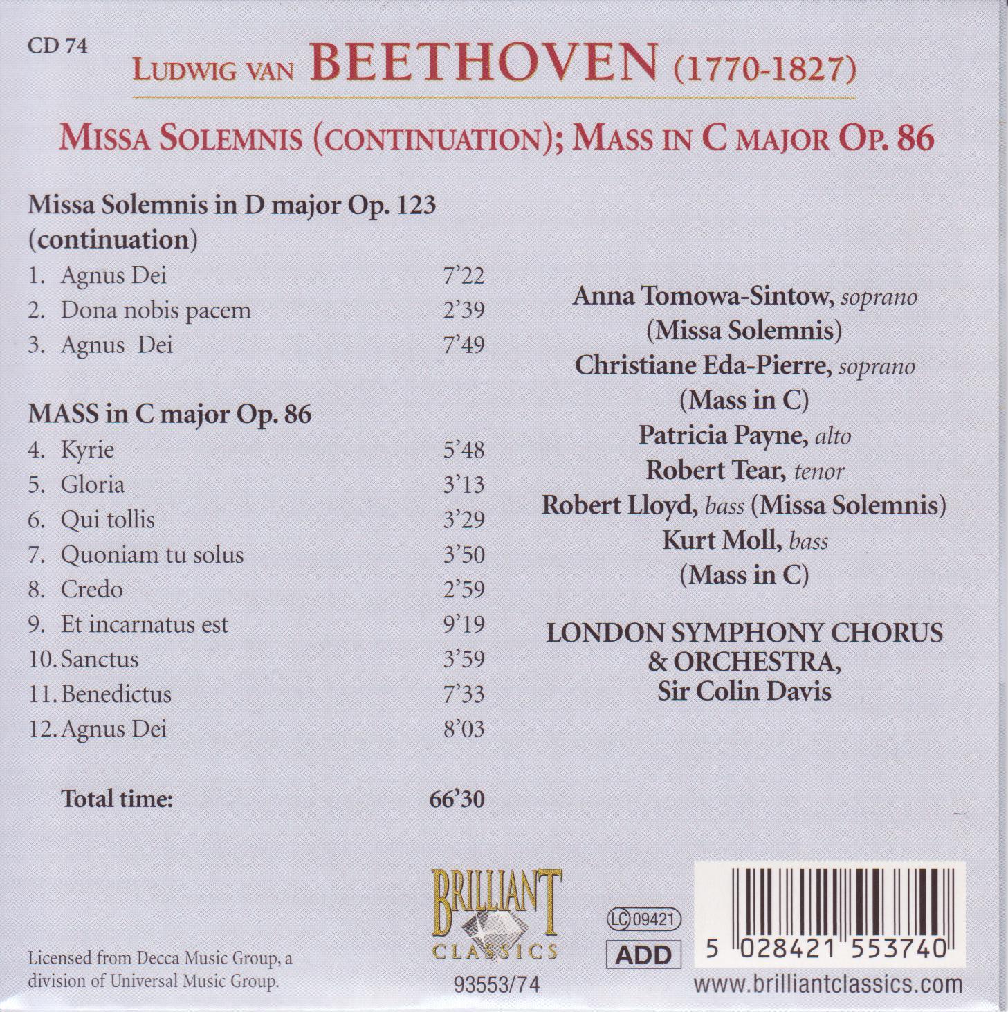 | - | Complete Works CD 074 - Missa Solemnis (continuation); Mass in C major Op.86.cue | 1330 | 2024-05-26 16:25:19 |