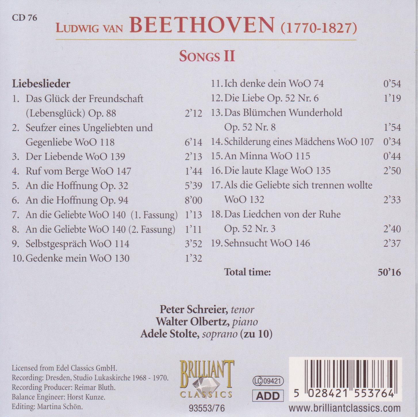 | - | 10 - Gedenke mein, WoO130.flac | 5353626 | | Complete Works CD 076 - Songs II | 10 | Ludwig van Beethoven | Gedenke mein, WoO130 | 1970 | 93.533333 | 457 | | flac | flac | | flac | 2024-05-26 16:24:18 |